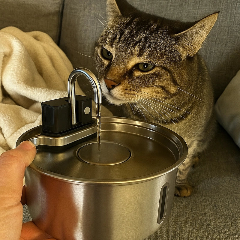 Absolutely! The fountain is crafted from premium stainless steel, known for its hygiene and durability. It's easy to clean and naturally resists bacteria, ensuring your cat's water stays pristine and safe.